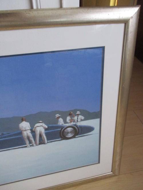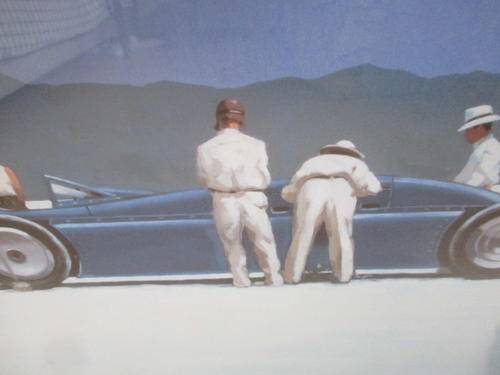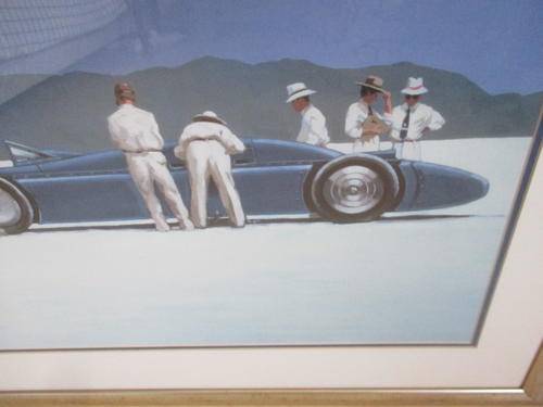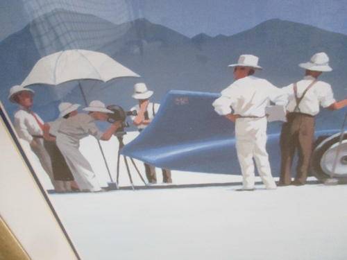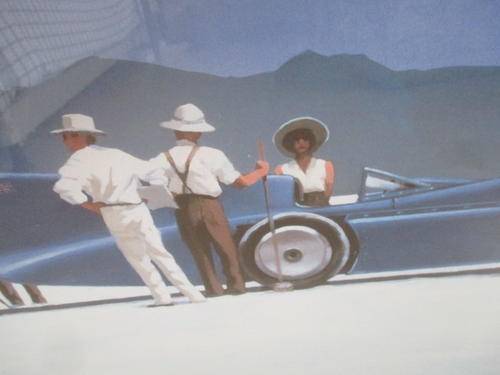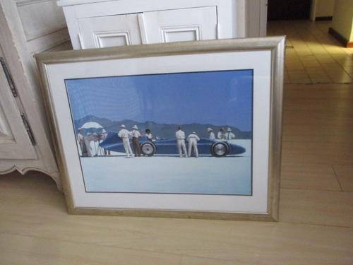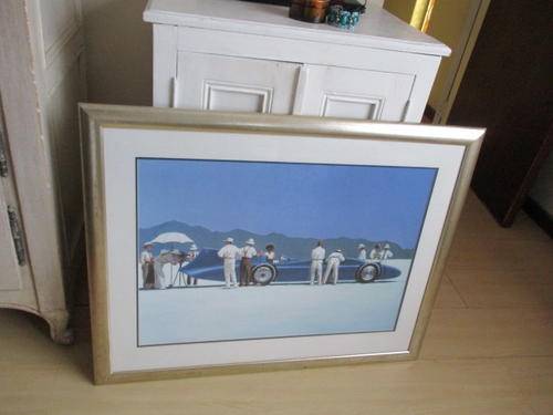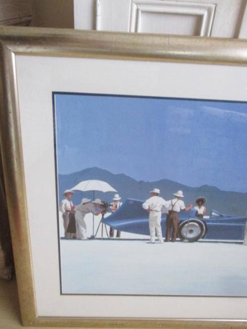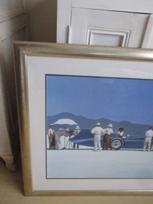 Framed print - Bluebird at Bonneville by Artist, Jack Vettriano. In a slightly distressed frame. size: 68cm x 86cm. Frame width is 5cm.
