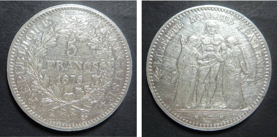 France, Hercules Group Silver 5 Francs of 1875