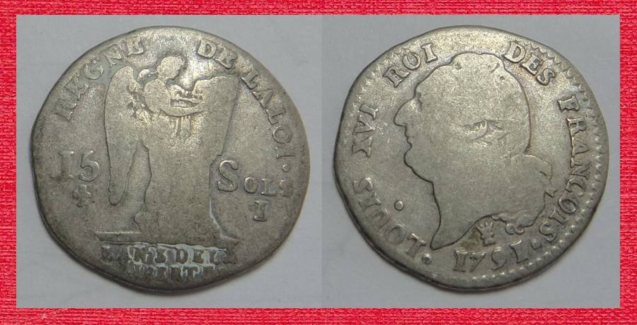 France, King Louis XVI, Silver 15 Sols of 1791
