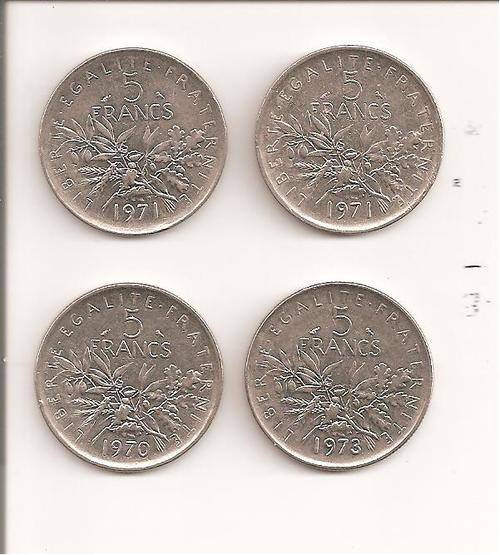 France, lot of four 5 Francs, 1971,1973,1970,1971, as per scan