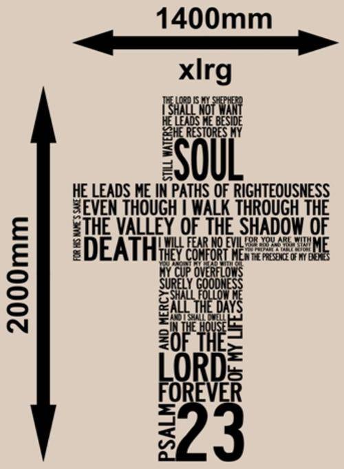 FREE SHIP/LOW COURIER - HUGE 2M PSALM 23 CROSS WALL STICKER - XLRG 60+ COLOURS