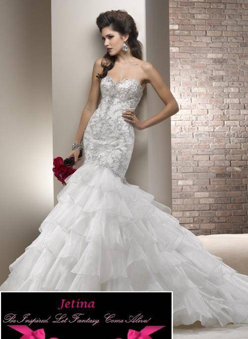 Ivory Organza Silver Decoration Sweetheart Mermaid 2013 Wedding Dress With Embroidery