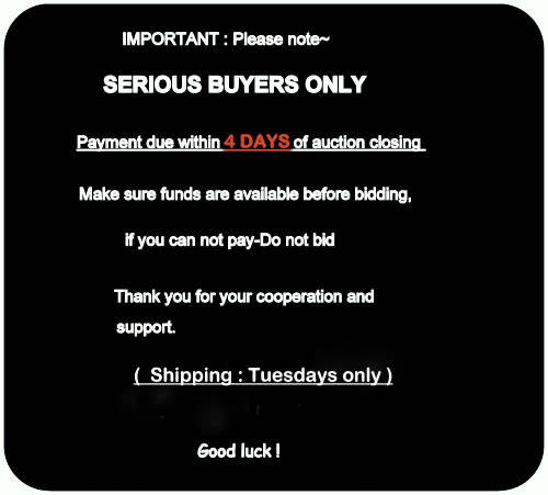 SERIOUS BIDDERS ONLY