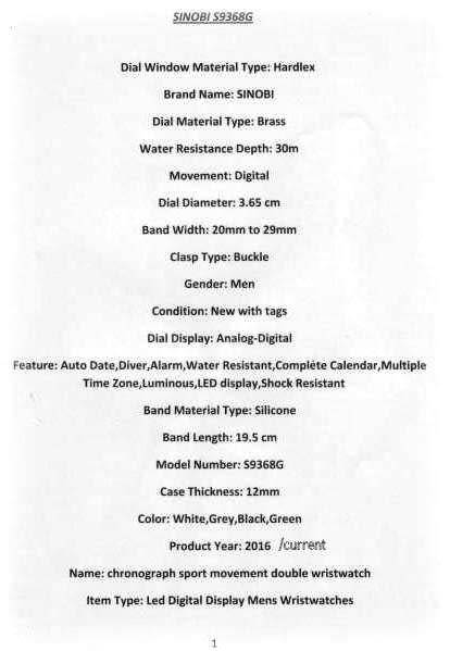 YOUR BID IS FOR THE GREEN STRAP SILVER CASE SINOBI
