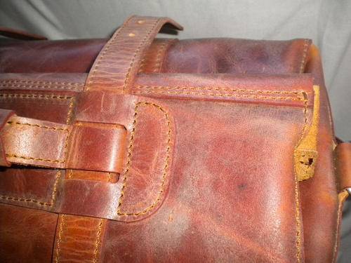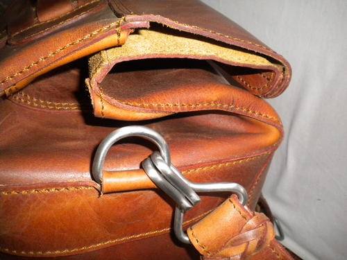 Closing straps with stainless steel harness buckles, around the bag for extra support.