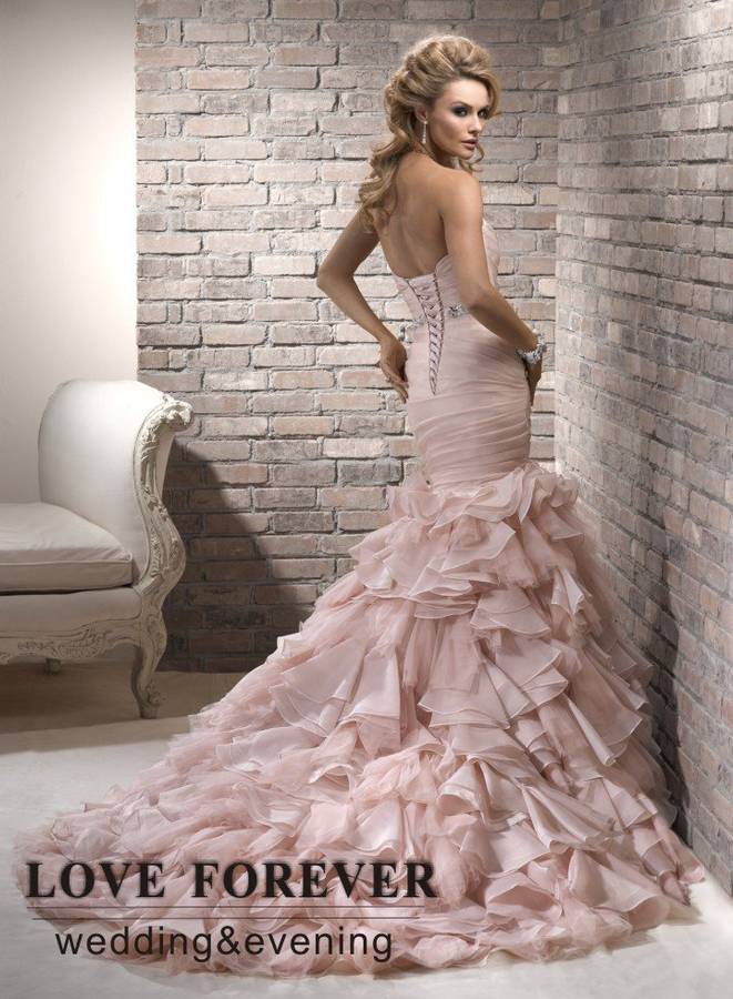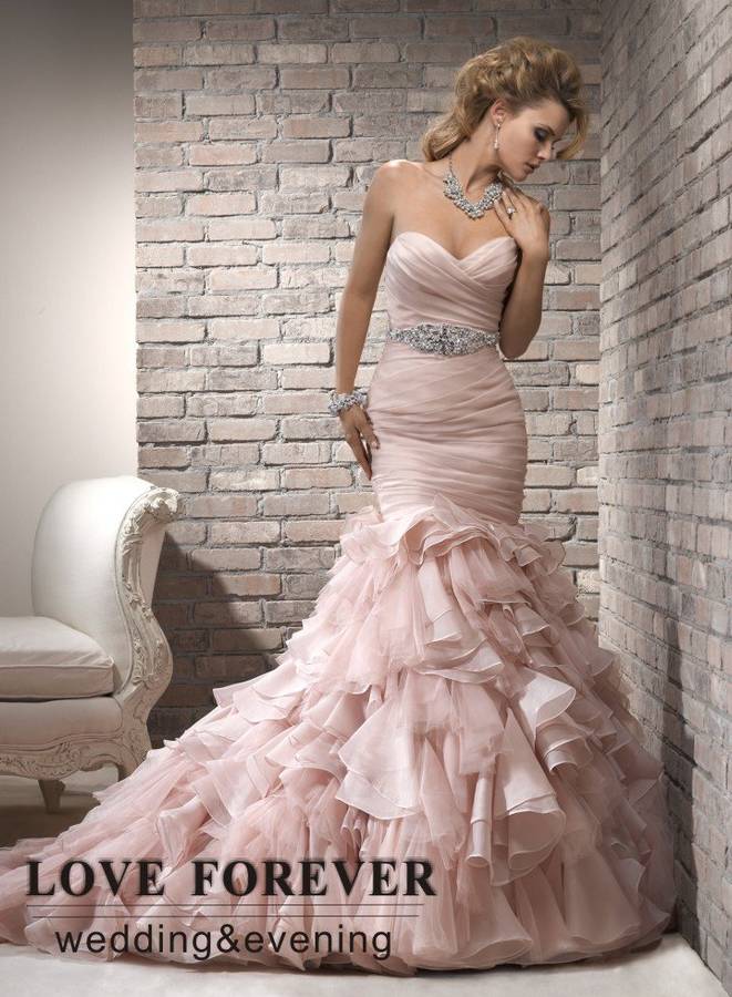 Pink Organza Black Ribbon Unique Sexy Mermaid Wedding Dresses With Train