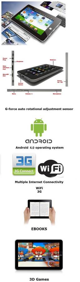 FREE USB KEYBOARD CASE! New 4GB 7" Google Android 4.0 Tablet 1GB RAM 800MHz