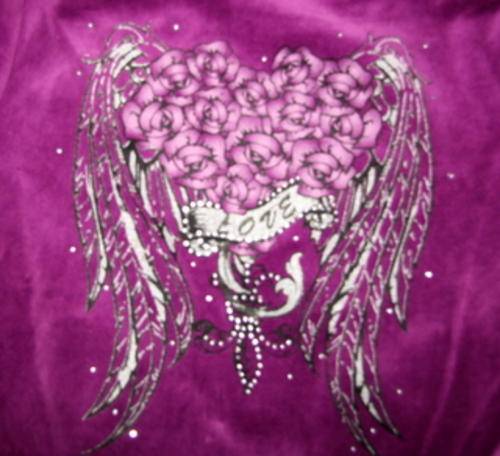 Purple Velour Hoodie, with tattoo style pink, silver and white motif on the back