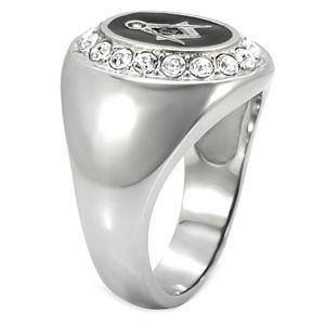 Rugged yet stylish men's black acrylic faced MASONIC ring is surrounded with 10 point simulated diamonds around the MASONIC logo.Manafactured from the finest stainless steel. Take note of the beautiful workmanship throughout the ring.