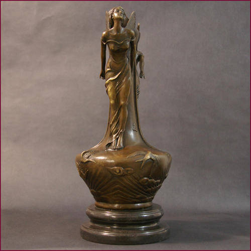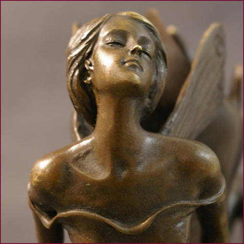 Melding sculpture and function, this classically shaped vase literally blossoms with two graceful fairies fraught with all the elements of organic Art Nouveau style. This Vase is totally made in bronze to highlight each detail from the fabric folds to the small wings.
