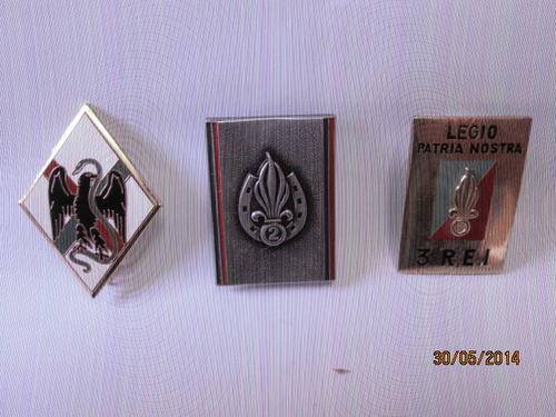 FRENCH FOREIGN LEGION. SET OF ALL THREE REGIMENTS CHEST INSIGNIA. THIS IS NOT A REPRODUCTION. PRICE