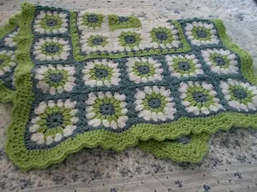 Made with acrylic wool in a tapestry of bright and fresh flowers in white, blue and green