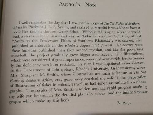 Foreword by Professor J L B Smith ; Department of Ichthyology Rhodes University December 1960 .
