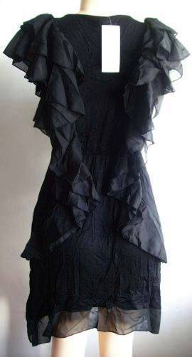 Frilled Black Dress. To Fit Sizes 36 - 38