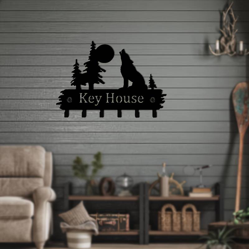 From 1pc Forest and Wolf Metal Decorative Key Hook Keychain Rack Door Back Wall Garage Key Hook De