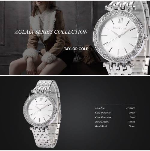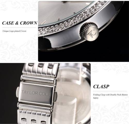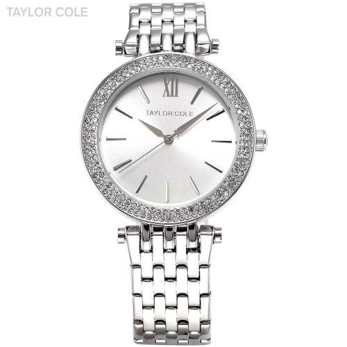 From UK** Magnificent* Taylor Cole Lady Silver Steel Band Luxury Crystal Women Watch*TOP Brand