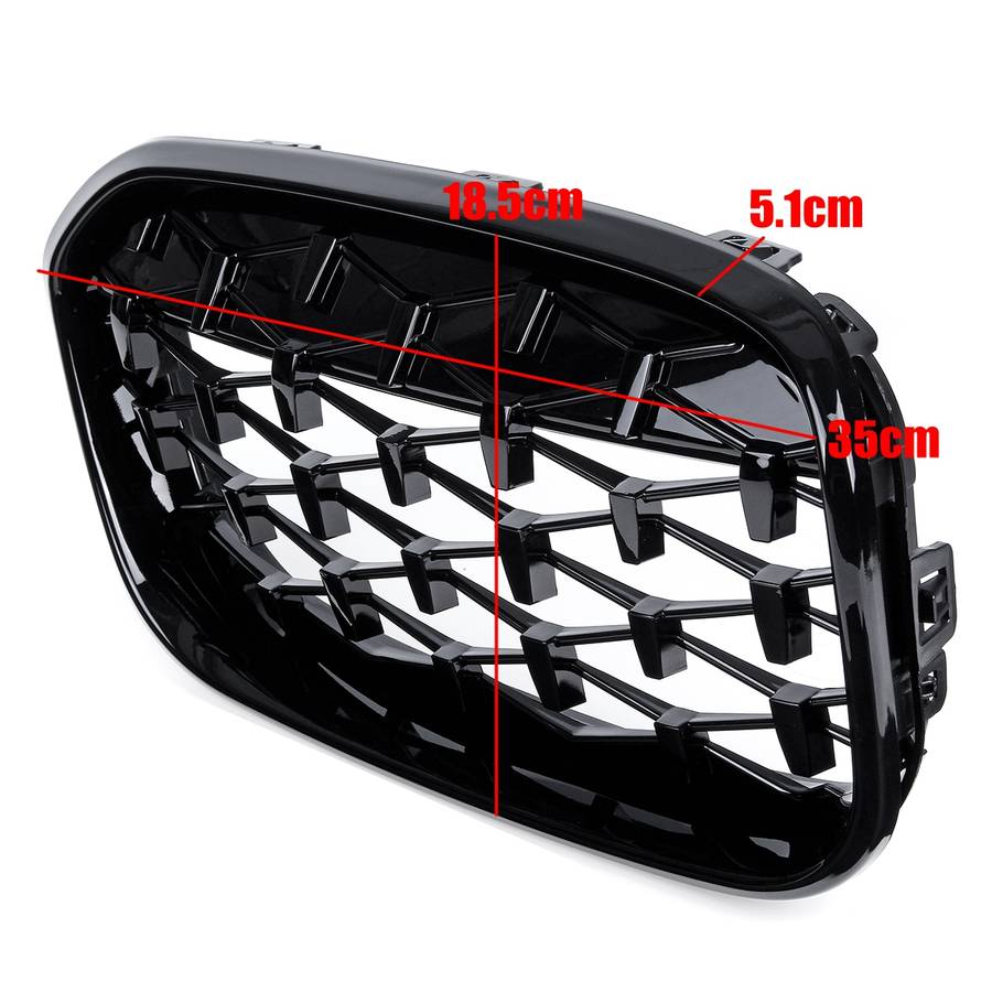 Pair Glossy Black Diamond Style Front Kidney Grille For BMW 1 Series F20 F21 15-17