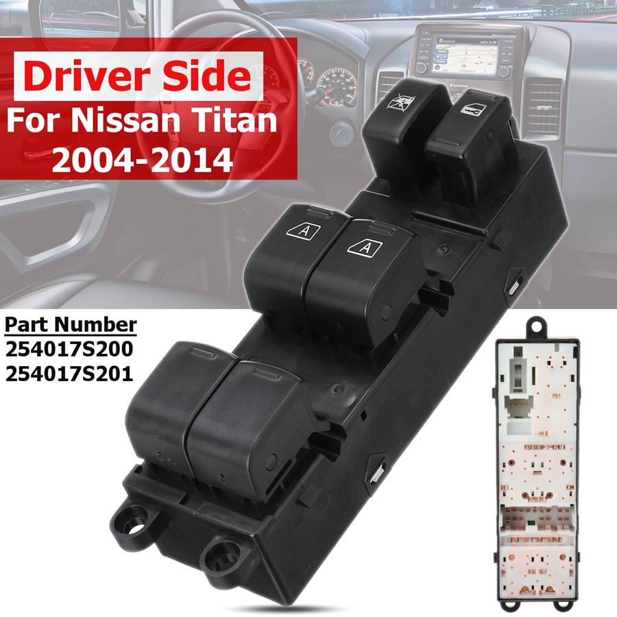 ABS Driver Side Electric Window Switch for Nissan Titan 2004-2014Description: Type: Power Window Switch Placement of Vehicle: Front Left Material: ABS Manufacturer Part Number: 25401-ZT10A Interchange Part Number: 254017S200, 254017S201, 25401ZJ30A, 25401ZT10A, DWS-165, SW9566 Fitment: For Nissan Armada 2004-2008(do not fit Armada wagon) For Nissan Titan 2004-2014 Features: 1.New ABS Driver Side Electric Window Switch 2.Durable,long lifetime guaranteed 3.Perfect aftermarket replacement Note: -We provide clear pictures, measurements where possible. -Please check as much as possible to make sure the item is the one that you need. Package Included: 1x Electric Window Switch