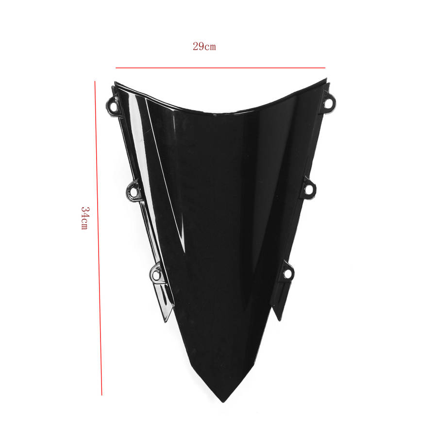Description: The windshield can protect motorcycle enthusiasts from the wind, thrown-up rocks, debris, and bugs. It has solid hardware, so they are stable. Windscreen will deflect more wind for a more comfortable ride, and this makes a more relaxing and safe ride. No modify needed, directly replace factory windscreen. Specification: Name: Motorcycle Windshield Color: Black Material: ABS Plastic Size: 34x29cm / 13.38x11.41inch Fitment: Fit For: 2016-2017 Honda CBR500R CBR400R Package Included: 1 X Motorcycle Windshield