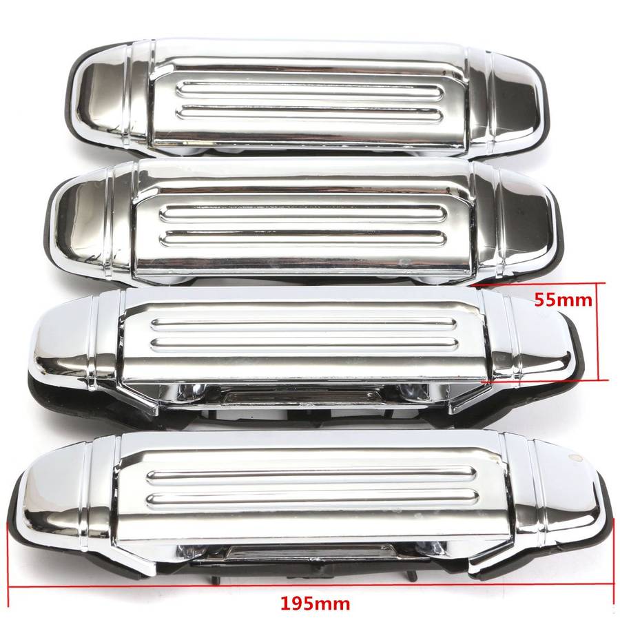Description: 1. Fit For Mitsubishi PAJERO1992-1997. 2. Front Rear Left Right Outside Door Handle. 3. Easy installation, scratch-resistant, long service life. 4. Using high quality ABS plating material, exquisite and durable. Feature: Material: ABS+Metal Color: Silver (Chrome) Quantity: 4PCS Package Included: 4 X Car Outside Door Handles