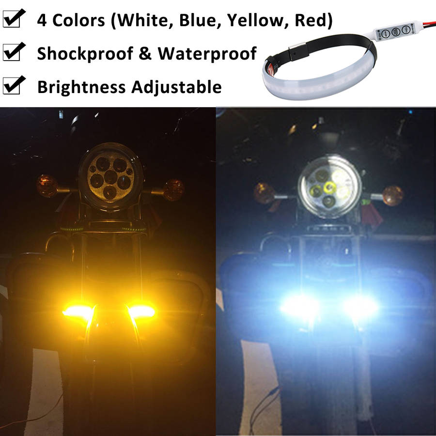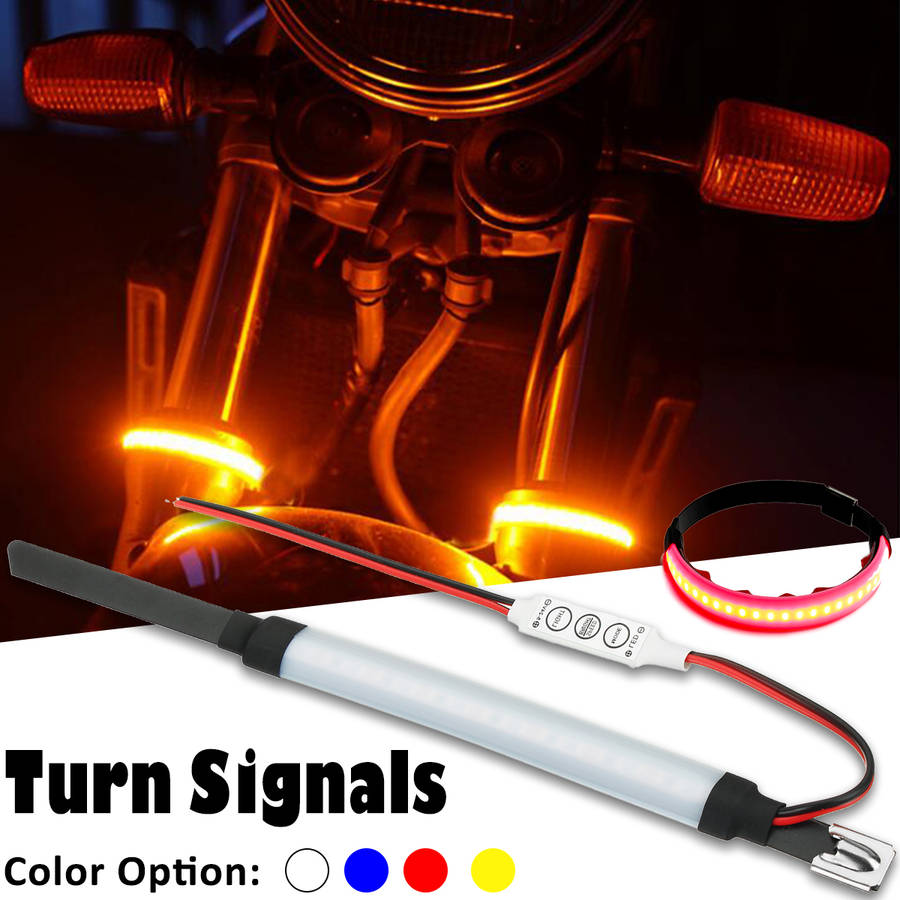 Specification: Product Name: Motorcycle Ring LED Turn Signals Voltage: 12V Application: 40mm-80mm/ 1.57 - 3.15 Diameter Light Color: White/ Blue/ Red/ Yellow Size: 25cm x 1.5cm/ 9.84 x 0.6 (Length x Width) Placement on Vehicle: Front Quantity: 1 PC