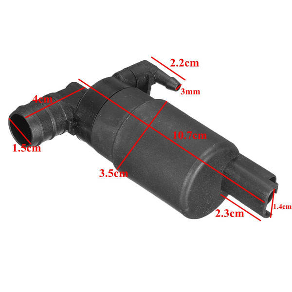 Material: Plastic Color: Black Quantity: 1 PC Type of Pump: Front & Rear Windscreen Outlets: Dual/Twin Outlet Size: like the picture show Package size: 10.5 x 7.3 x 3.5cm (LxWxH)