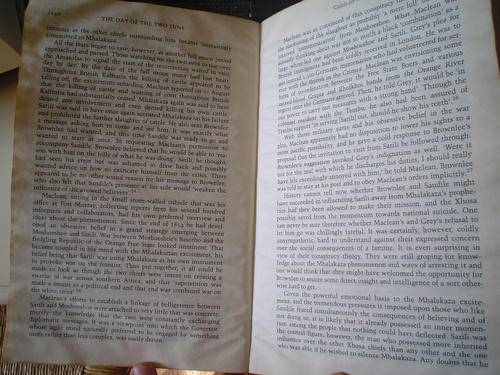 In the 1850s, in despair after sixty years of disasterous wars and government betrayals that had cost them most of their ancestral lands, the Xhosa, - South Africa's most important and sophisticated black nation - gave way to a strange and dangerous teaching. Prophets among them declared that salvation lay in killing all their cattle their most prized possession, and destroyng all their food stocks. If they did this, on a certain day everything would be returned by supernatural agency in much greater abundance - huge new herds, copious supplies of grain - and the white man would be expelled from the lands he had stolen. The herds were slaughtered, the appointed day came, and passed; thousands of Xhosa starved to death. It was, in the words of one sympathetic missionary, 'a sad horror'.