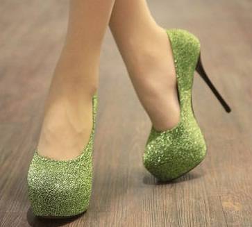Frosted Leather Pumps in Green