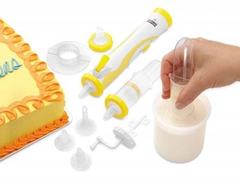 The battery powered, Swiss designed Deco Pen offers complete control for decorating cakes, cookies and cupcakes with the utmost precision. The pen-like operation requires just one hand to achieve astounding results. Includes with 6 decorating tips for a variety of effects; you can even use it to give your cupcakes a yummy centre with the filler tip. Complete with 3 separate cartridges, colours can be interchanged quickly and easily whilst you work, while the mixer allows you to create your own unique colours