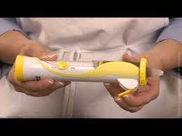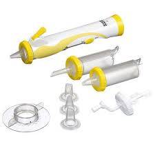 The battery-powered unit handles just like a pen, simply push down on the yellow lever to dispense frosting in two speeds - fast or slow.