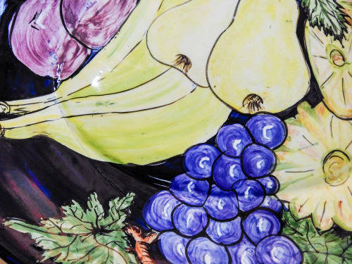 Measures 40 cm by 32,5 cm by 6,5 cm . Has a small hairline crack.