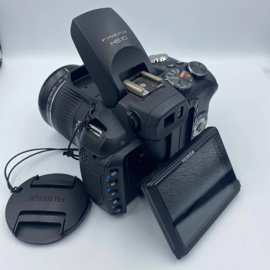 Fujifilm FinePix HS10 - 10MP BSI CMOS, Fujinon 30x Wide Optical Zoom (24 - 720mm), 3.0" High Contrast Tilting LCD. Other features include: Face Detection w/ Red Eye Removal, Face Recognition, Tracking Auto Focus, Triple Image Stabilization, Full Resolution Continuous Shooting at 10fps, High Sensitivity 6400 ISO, 6 Scene - SR Auto Automatic Scene Recognition, HD Movie 1080i w/Stereo Sound, Super High Speed Movie Mode Captures 1000fps, Motion Panorama Mode, Motion Removal Mode, Multi-Motion Capture, 4-AA Batteries