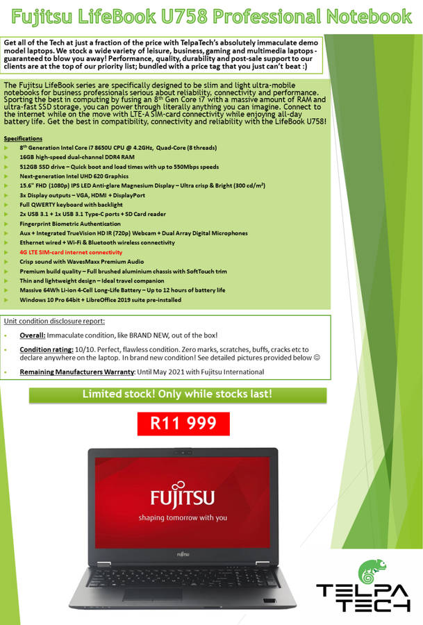 ** ALL DEMO LAPTOPS COME WITH THE REMAINDER OF MANUFACTURERS WARRANTY (IF APPLICABLE), PLUS A 12 MONTH (1 YEAR) HARDWARE FAILURE WARRANTY FROM US FROM DATE OF PURCHASE, FULFILLED BY OUR AFFILIATE TECHNICAL EXPERTS. IF WE ARE UNABLE TO REPAIR OR REPLACE YOUR UNIT, A FULL REFUND WILL BE GIVEN.