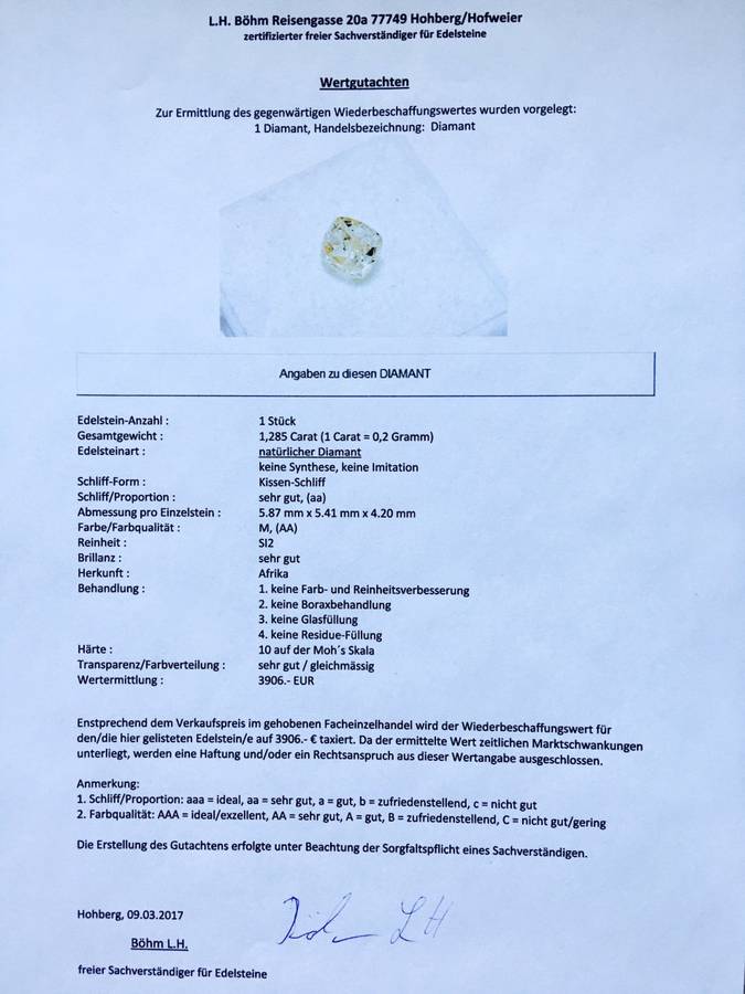 Full Of Sparkle/Appraisal included 1,285ct M Color SI2 Cushion CUT Diamond For Ring