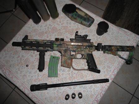 1 x Sierra 1 (Custom Camo sprayed), with response trigger and cyclone feeder and with short barrel and 2 mags