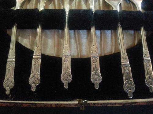 Full set of 6 apostle cake forks in original box EPNS stamped(made in Sheffield England