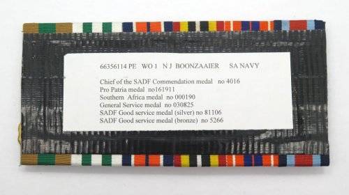 Full Size. Group Of Six Medals. To: 66356114 PE WO 1 NJ Boonzaaier SA Navy