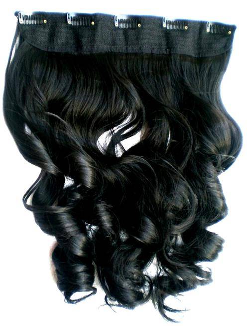 * 5 Clips on Wavy Hair Extension Black #1 *