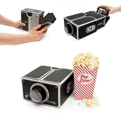 Made entirely from rigid cardboard and printed to look just like a retro device, this stylish projector contains a high-quality glass lens with an impressive 8x magnification to really do your videos justice.