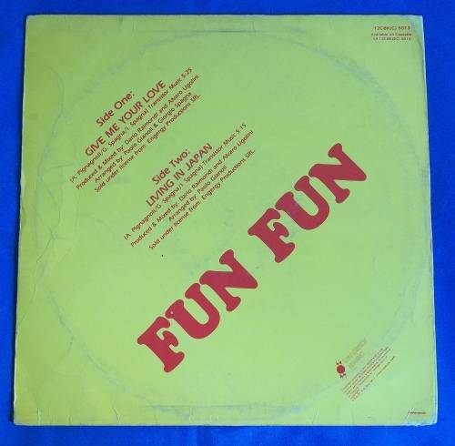 FUN FUN - GIVE ME YOUR LOVE/LIVING IN JAPAN - 12 INCH MAXI - VG/VG - ITALIAN DISCO/SYNTHPOP