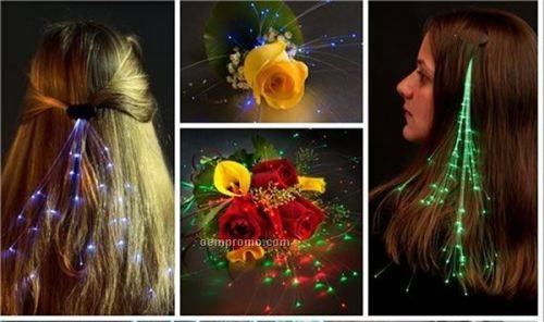The barrette can be clipped into your hair, and the fibre optics glow from an array of strands. Allow the strands to stick out for a dramatic look, or you can brush the strands into your hair for sparkles that seem to come from your hair.