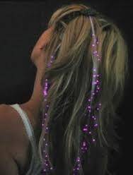 They actually glow from an array of fibre-optic strands that can be weaved into your hair.