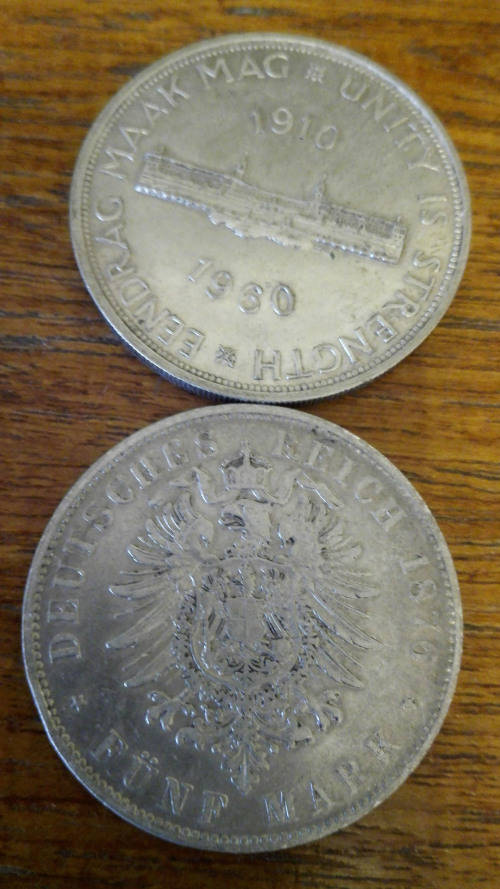 BEAUTIFUL AND RARE GERMAN 5 MARK SILVER COIN. THE CROWN IS FOR DISPLAY[SCALE] ONLY.