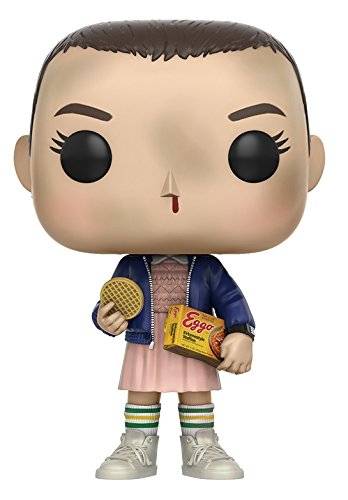 From Stranger Things, Eleven with Eggos(styles may vary), as a stylized POP vinyl from Funko! Figure stands 3 3/4 inches and comes in a window display box. Check out the other Stranger Things figures from Funko! Collect them all!.