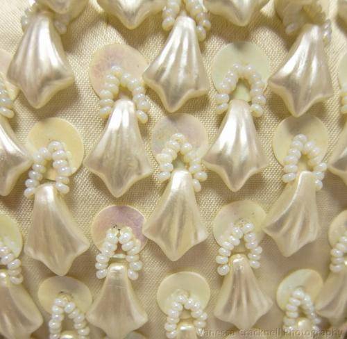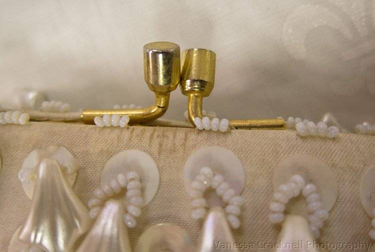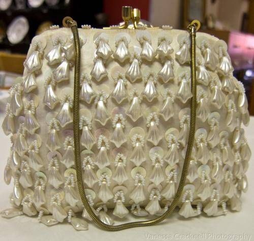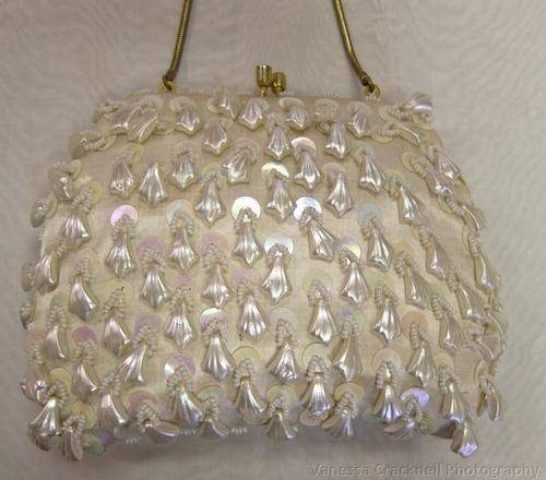 On offer, is this FUNKY 1950'S EVENING BAG - PEARLISED BEADS - ORIGINAL GILT HANDLE