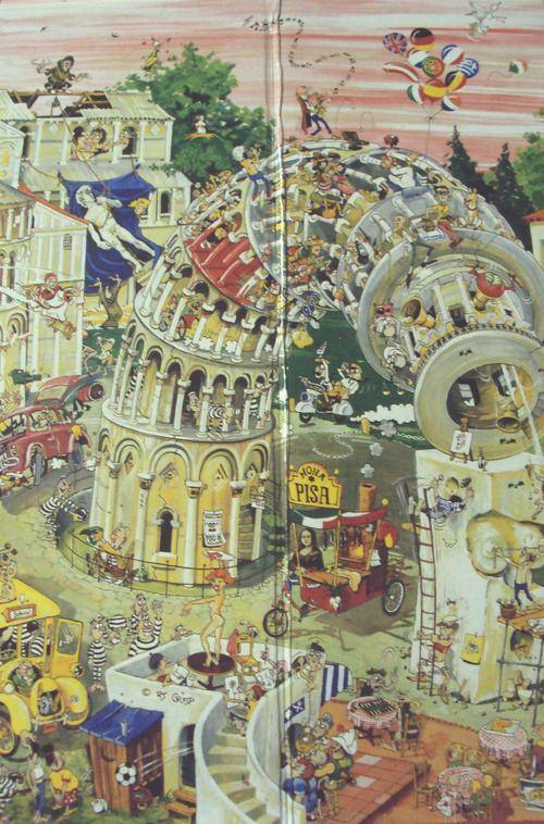 The puzzle is a about the leaning tower of Pisa, The puzzle has only been built once and all the pieces are saved in a plastic bag. The puzzle size is +/- 82 x 58 cm