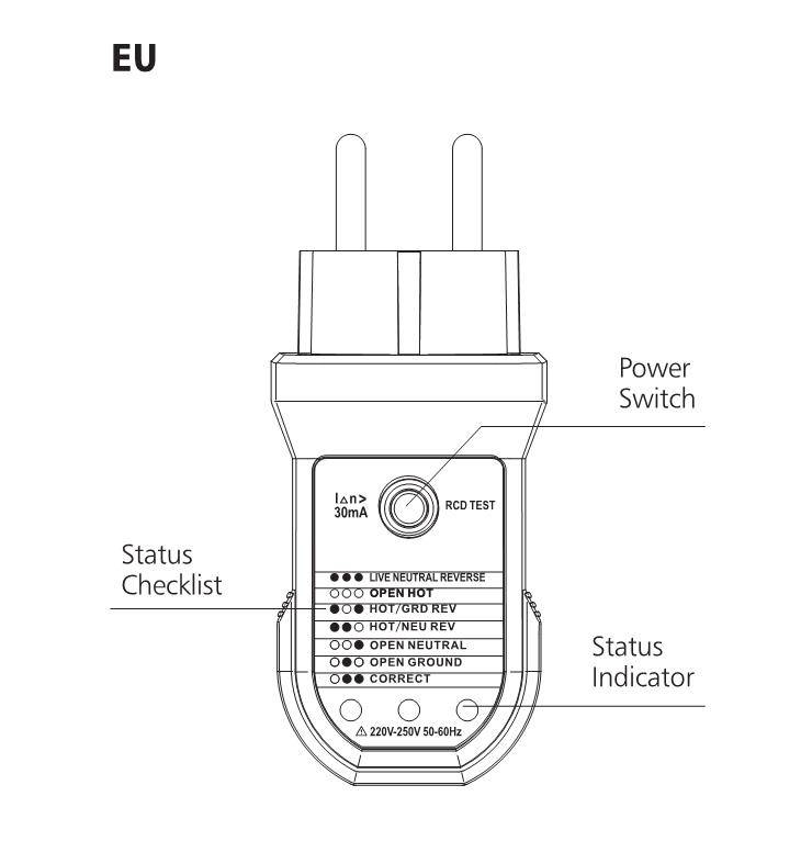 Package Includes: 1 x Socket Tester(EU Plug) 1 x English User Manual Details Pictures:
