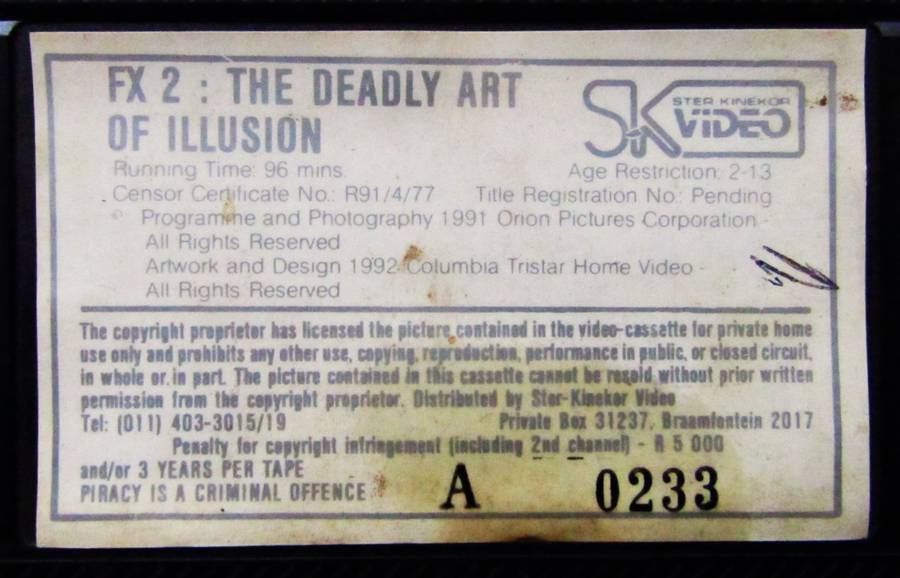 FX2 - The Deadly Art of Illusion - Movie VHS Tape (1992).