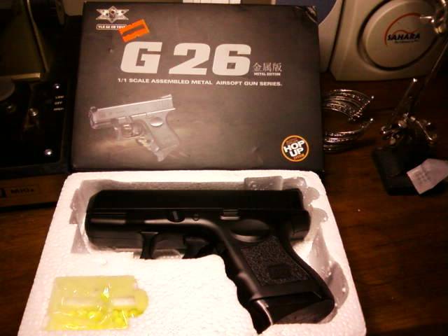 The G26 full metal pistol shoots 6mm bb pellets; metal, plastic, paintball, pepper ball - .12g and .20g pellets.