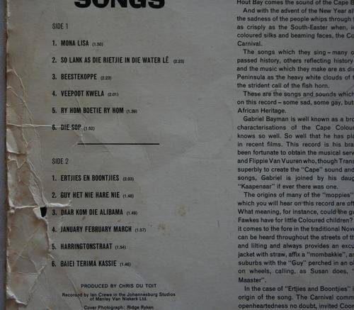 GABRIEL BAYMAN -- CAPE COMIC SONGS -- VINYL LP RECORD